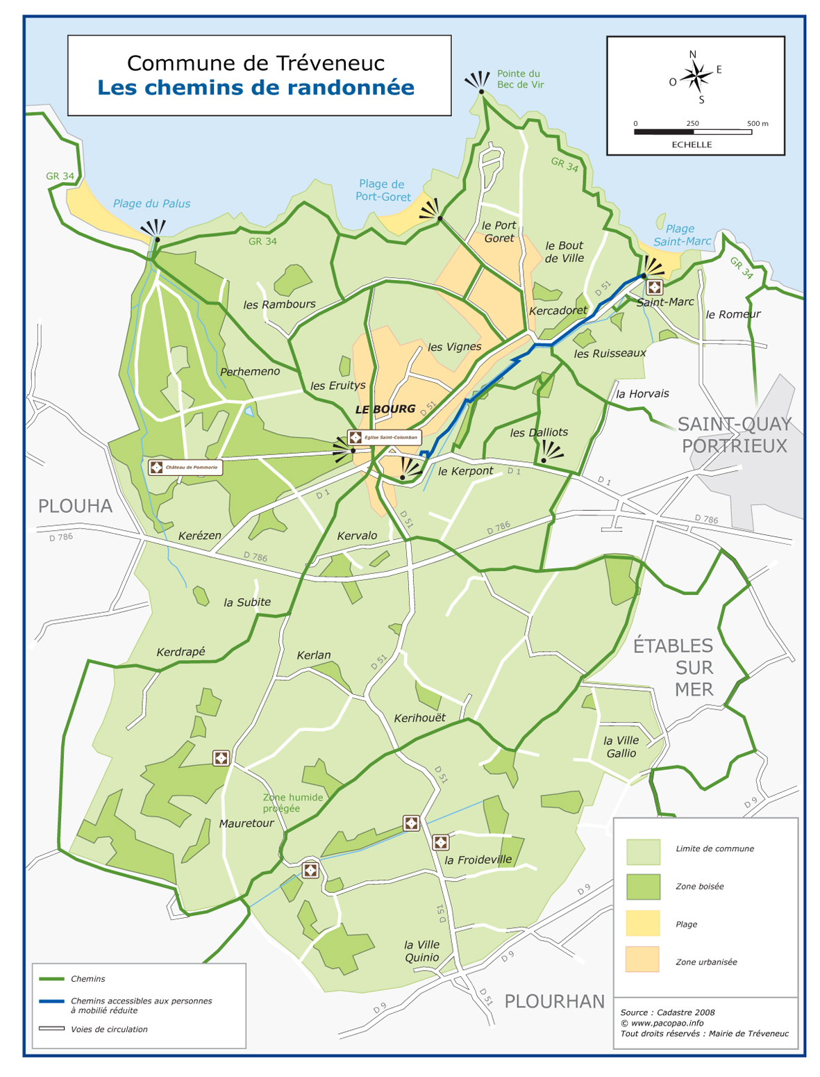 La commune regorge de nombreux sentiers parmi lesquels le fameux GR34, longeant toute la côte, mais aussi des sentiers traversants dont celui du Kerpont, accessible aux personnes à mobilité réduite, des sentiers équestres ou cyclables.